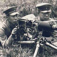 昭和15年、信太山で重機演習をする私(左)(当時22歳)